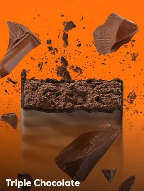Triple Chocolate: Zvlhčující látky (maltity, glycerin), kakaová poleva [sladidlo (maltity), plně ztužené rostlinné tuky (kokos, brukev řepka), nízkotučný kakaový prášek, emulgátor (lecitiny)] 15%, drcené kakaové boby 11%, kousky čokolády [sladidlo (maltity), kakaová hmota, emulgátor [lecitiny (sója)], nízkotučný kakaový prášek, přírodní aroma] 11%, syrovátkový proteinový koncentrát, hydrolyzovaný kolagen, koncentrát mléčné bílkoviny, fruktooligosacharidy, plně rafinovaný kokosový olej, instantní syrovátkový proteinový izolát {syrovátkovýproteinový izolát, emulgátor [lecitiny (sója)]}, pitná voda, nízkotučný kakaový prášek, mandlová mouka, emulgátor [lecitiny (sója)], želírující látka (karagenan), aromata, konzervant (sorban draselný), stabilizátor (chlorid draselný), antioxidant (alfa-tokoferol), sladidlo (sukralóza).