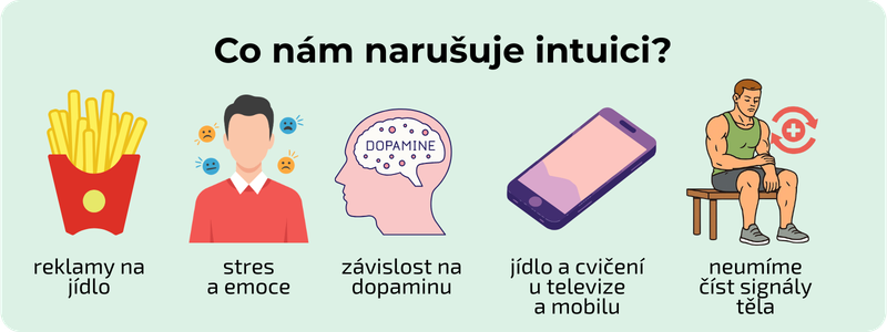 Intuitivní stravování stojí na schopnosti rozpoznat signály těla – hlad, sytost nebo potřebu energie. Moderní prostředí tyto signály ale výrazně narušuje. Reklamy na jídlo, stres, nedostatek spánku nebo sociální sítě způsobují, že často jíme spíš kvůli chuti nebo dopaminové odměně než kvůli skutečnému hladu. Není proto výjimkou, že lidé při „intuitivním“ stravování sní více, než jejich tělo potřebuje.