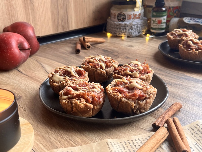 Máte chuť na něco sladkého, ale nechcete sklouznout k obyčejné buchtě plné cukru? Tyto jablečné košíčky jsou ideální kompromis. Křehké těsto s proteinem, voňavá jablečná náplň a na závěr arašídové máslo pro dokonale krémovou tečku.
