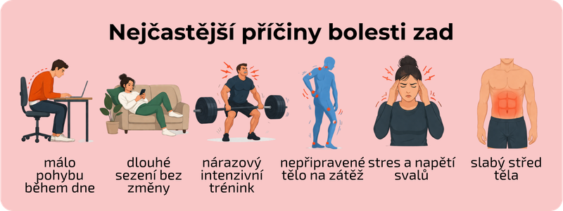 Bolest zad není jen o špatné technice nebo „špatném pohybu“. Ve většině případů jde o kombinaci nedostatku pohybu, nepřipravenosti těla a celkového životního stylu.