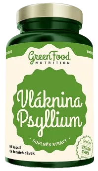 GreenFood Vláknina PsylliumPsyllium je rozpustná vláknina podporující správný metabolismus tuků a navozující pocit sytosti. Praktická forma kapslí je vhodná pro všechny, kterým nevyhovuje mísit volný prášek s tekutinou nebo ho přidávat do jídla.