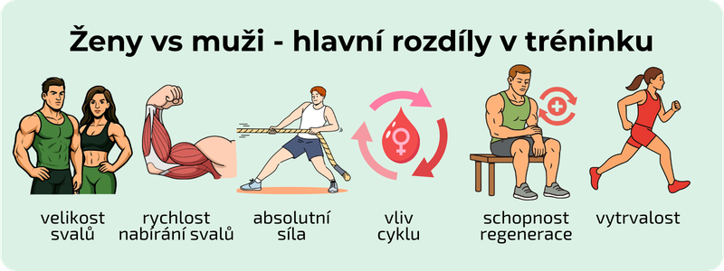Jedním z hlavních rozdílů je spíše potřeba většího naslouchání vlastnímu tělu. Ženy mohou při plánování tréninku více zohlednit menstruační cyklus a celkový pocit energie během jednotlivých dnů.