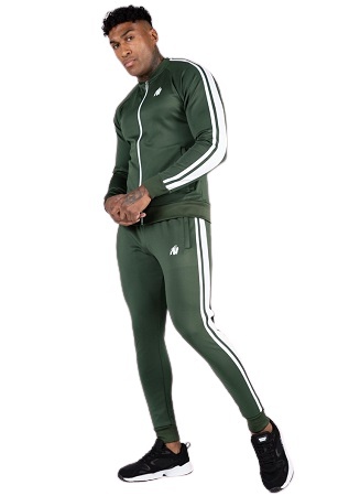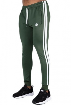 Tepláky s úzkým střihenm, který zvýrazní vaši postavu. Tepláky jsou vyrobeny ze směsi vysoce kvalitního polyesteru a elastanu, díky čemuž se přizpůsobí vaší postavě. Pružná tkanina umožňuje volnost pohybu. Tepláky Riverside jsou zakončeny kapsami na zip, bílým páskem na nohavicích a logem Gorilla Wear na stehně.