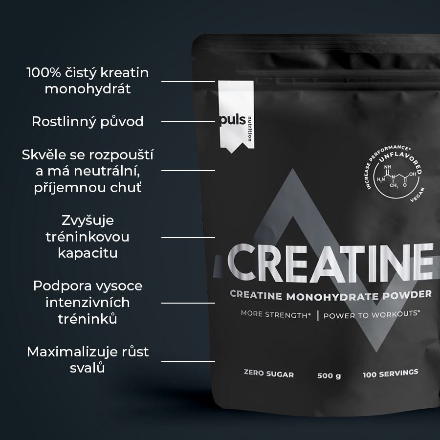 Kreatin se přirozeně nachází v lidském těle a slouží jako rychlý zdroj energie při svalové kontrakci. Jeho suplementace pomáhá zvyšovat výkon při silových a intervalových aktivitách, podporuje schopnost zvládat vyšší tréninkovou zátěž a přispívá k dlouhodobému progresu. Pravidelné užívání je spojováno s podporou budování čisté svalové hmoty a lepší regenerací mezi sériemi.