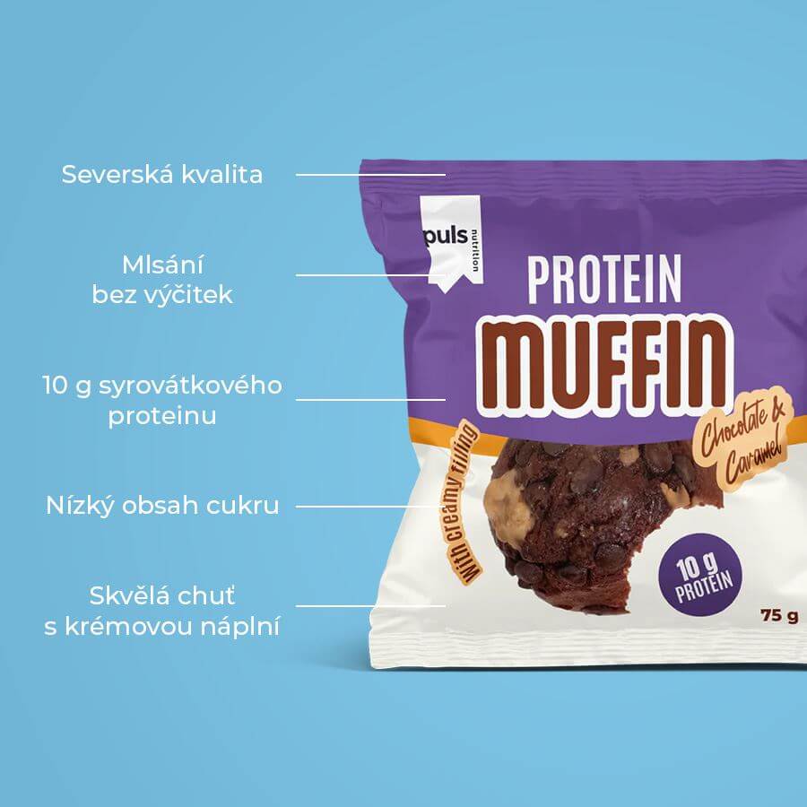 Existují momenty, kdy si chcete dopřát něco sladkého a zároveň zůstat věrní svým cílům. Protein Muffin je přesně pro tyto chvíle.Poctivě upečené, vláčné těsto s jemnou strukturou ukrývá lahodnou krémovou náplň, která se rozplývá na jazyku. Každé sousto přináší skutečný chuťový zážitek – bez zbytečné cukrové zátěže. Každý muffin obsahuje 10 g kvalitního syrovátkového proteinu a má nízký obsah cukru, díky čemuž představuje chytrou volbu pro aktivní životní styl.